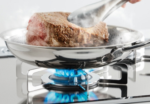 ハイパワー加熱 強いガスの力と電子レンジ出力600Wでスピード加熱調理。 |