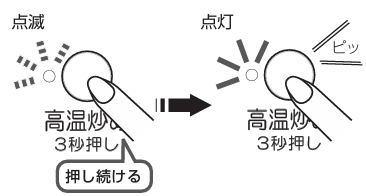 煎りもの・炒めもの・炙りもの料理などで、炎が小さくなったり消えてうまく調理できない場合、「高温炒め機能」を設定すると通常より高い温度で調理ができます。