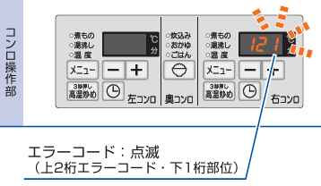 上2桁の数字でエラーの内容を確認して、下1桁の数字でコンロのどの場所でエラーが起きているのか確認をしましょう。