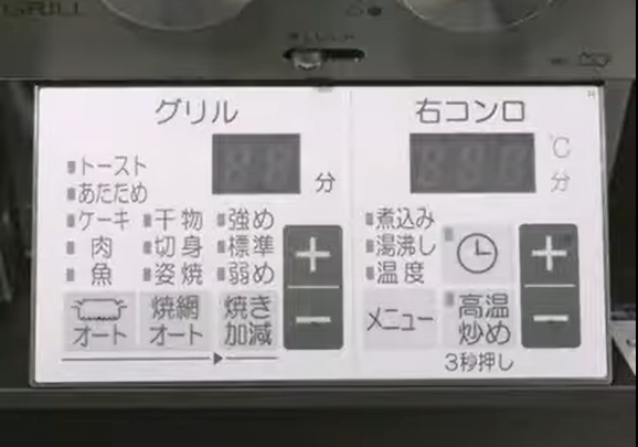 パロマのガスコンロでエラーがあったとき、右コンロ操作部に表示があります。
