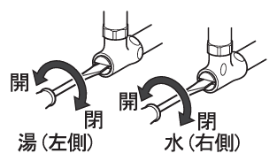 ②湯側の止水栓をまわして適量に調整する。