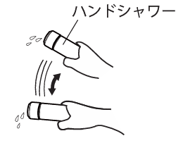 ⑧ハンドシャワーをいっぱいまで引き出し、よく振り、水が出なくなったら吐水口へ戻す。