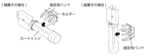 8.カートリッジをホルダーに設置し、固定用バンドで留める。