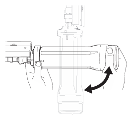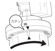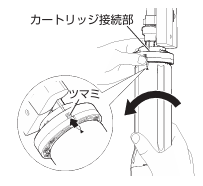 2.カートリッジ接続部のツマミを上げたまま、カートリッジ接続部をしっかり押さえ、カートリッジを左方向に回す。