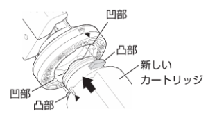 5.新しいカートリッジの凸部をカートリッジ接続部の凹部に合わせ、カートリッジを差し込む。
