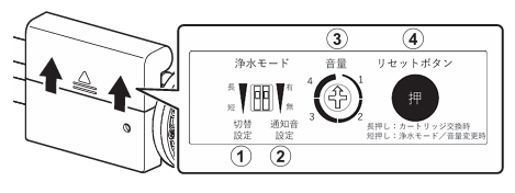→浄水の流量が少ないといった兆候があれば、カートリッジを交換してください。