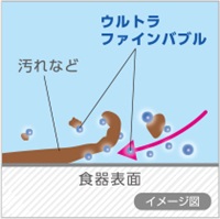 ![]() ウルトラファインバブルの洗浄力 ウルトラファインバブルは、毛穴や毛髪よりもはるかに小さく、目にも見えない泡なので様々な洗浄効果はもちろん、水産養殖、野菜の成長促進、鮮度の保持、酸化防止などにも注目が集まっています。食器や食材についた汚れの隙間に入り込み、 油分などを吸着して流し落とします。! | |