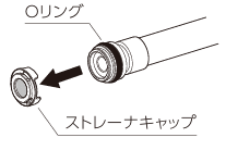 ④フレキシブルホース先端にあるストレーナキャップを外す。