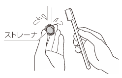 ⑤ストレーナ部分の汚れを歯ブラシなどでこすり洗いをして取り除く。