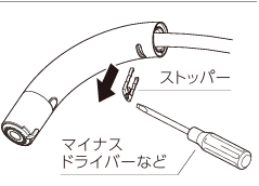 ②浄水器部を引き出し、浄水器部根元にあるストッパーをマイナスドライバーなどを引っ掛けて引き抜く。