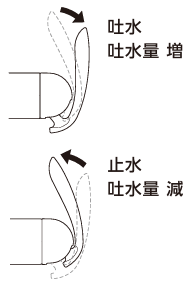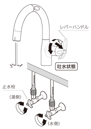 レバーハンドルを下へ傾け、吐水の状態にしてください。