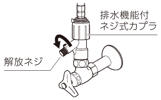 寒冷地仕様の排水機能付ネジ式カプラの解放ネジを締める