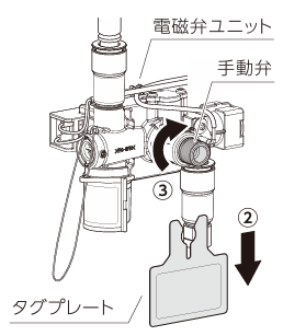 ※タグプレートは必ず取り付けてください。手動弁が動き、センサースイッチで止水ができなくなる恐れがあります。