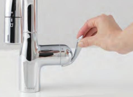 takagiのLCシリーズのタッチレス水栓を使用していて停電した場合や、センサースイッチが故障した場合、応急対応としてレバーハンドルでの吐水・止水が可能です。
