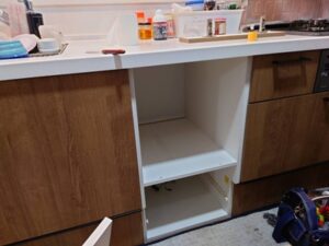 浅型食洗機ZWPP45R21ADKを撤去して背面にパネルを貼り開き扉を取り付け