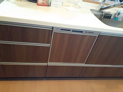 スライドオープン食洗機,引出しタイプ,食洗機交換,食洗機取替え,施工事例,パナソニック,NP-45MS8S,ミドルタイプ,システムキッチン,ビルトイン食洗機,ビルトイン機器交換