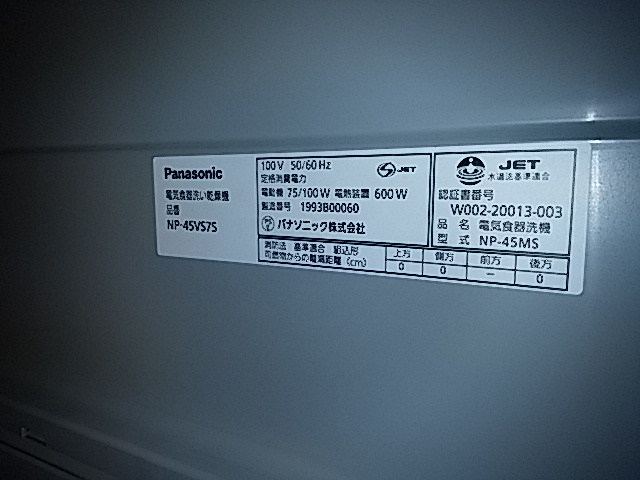 パナソニック食洗機 スライドオープン食洗機交換 NP-45MD7S②