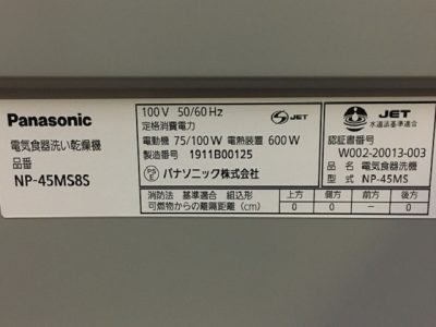 パナソニック食洗機 交換 NP-45MD7S③