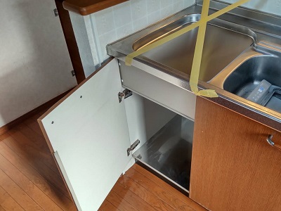食洗機撤去,浄水器撤去,キッチン水栓取替,カラン取替,ZZKM5031TCL-E,カクダイ化粧フタ,扉取付,撤去工事,クリナップ