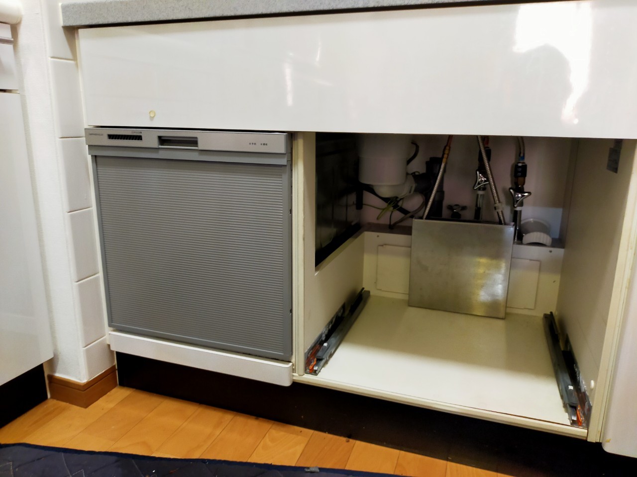 スライドオープン食洗機,引出しタイプ,食洗機交換,食洗機取替え,施工事例,パナソニック,NP-45MS8S,ミドルタイプ,システムキッチン,ビルトイン食洗機,ビルトイン機器交換