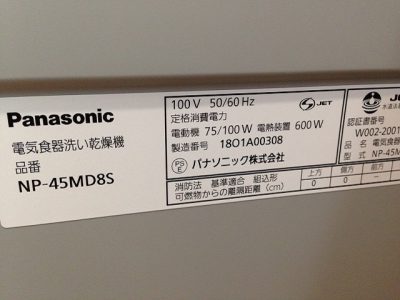パナソニック食洗機 後付け NP-45MD7S①