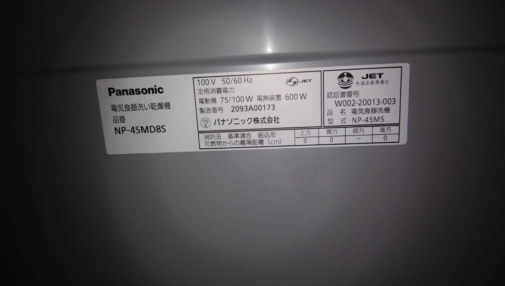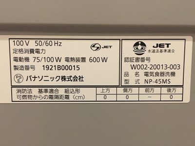 パナソニック食洗機 新設 NP-45MS7S④
