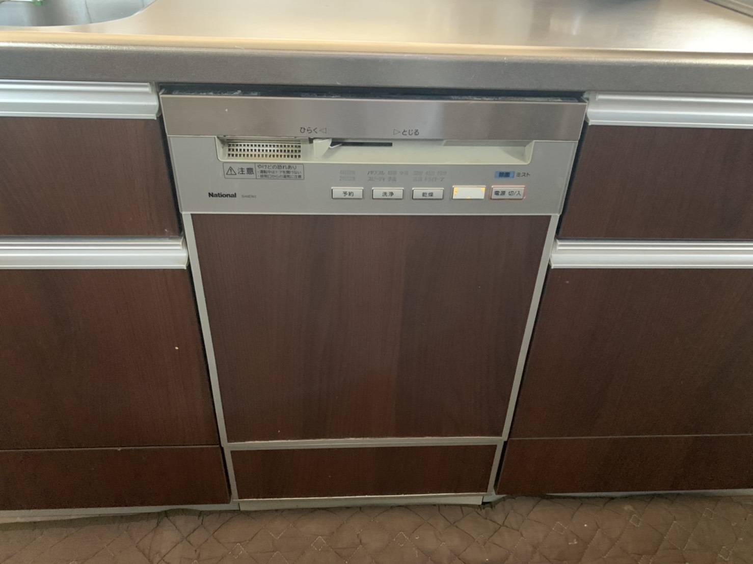 NP5600B,NP-45MC6T,ナショナル,パナソニック,リンナイフロントオープン食洗機,スライド食洗機,リンナイ電子コンベック,食洗機入れ替え,電子コンベック撤去,キャビネット取付,