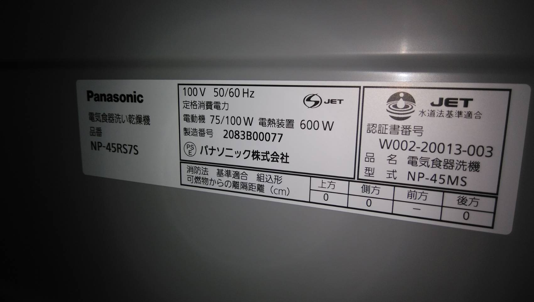 食洗機,入れ替え,スライドオープン食洗機,NP-P45F1S1TM,Panasonic,入れ替え,NP-45MS8S