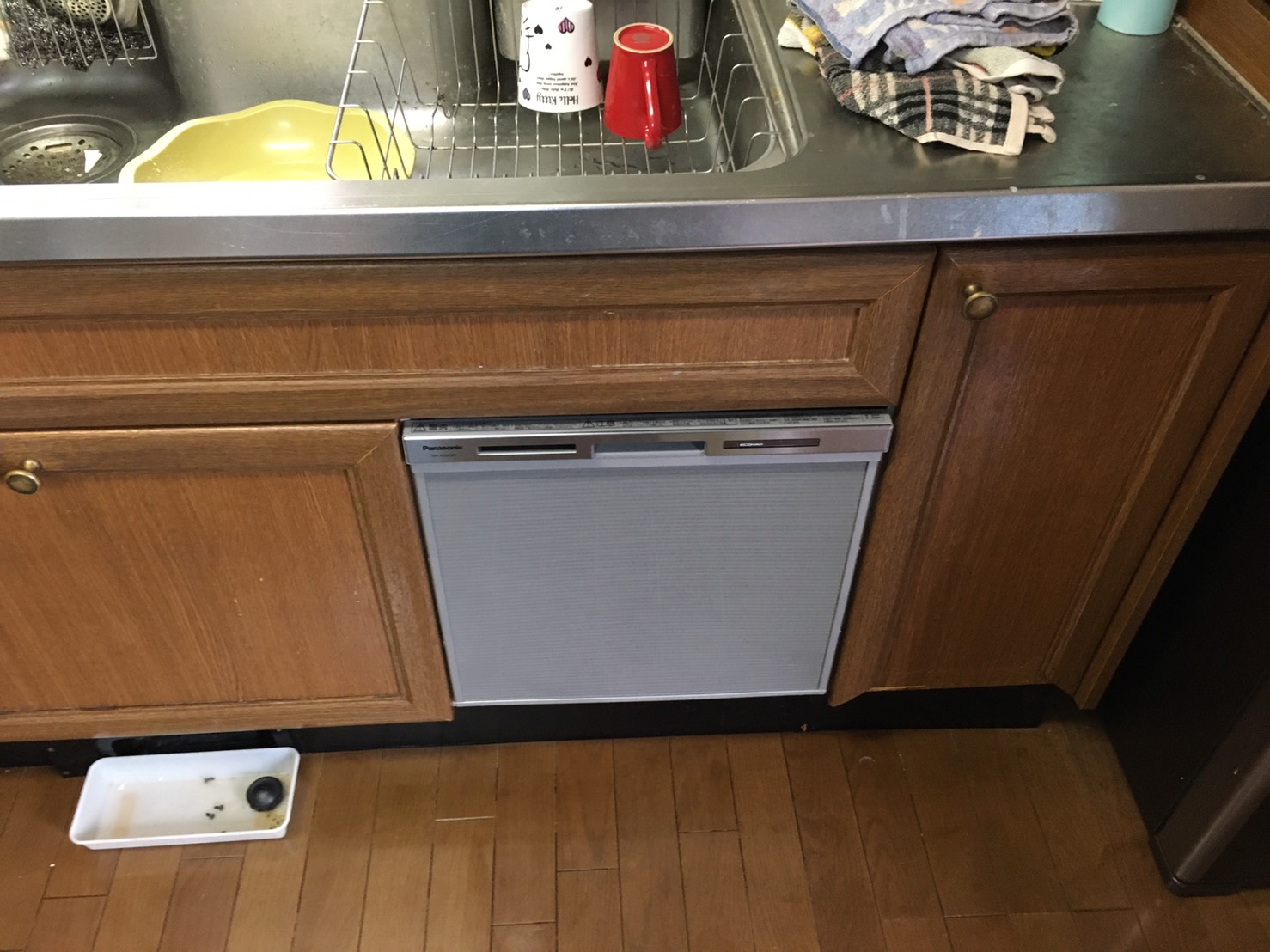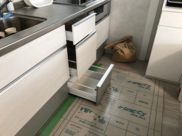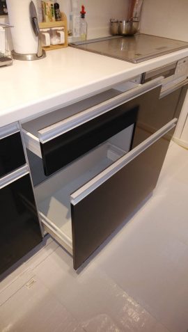スライドオープン食洗機,引出しタイプ,食洗機交換,食洗機取替え,施工事例,パナソニック,NP-45MS8S,ミドルタイプ,システムキッチン,ビルトイン食洗機,ビルトイン機器交換