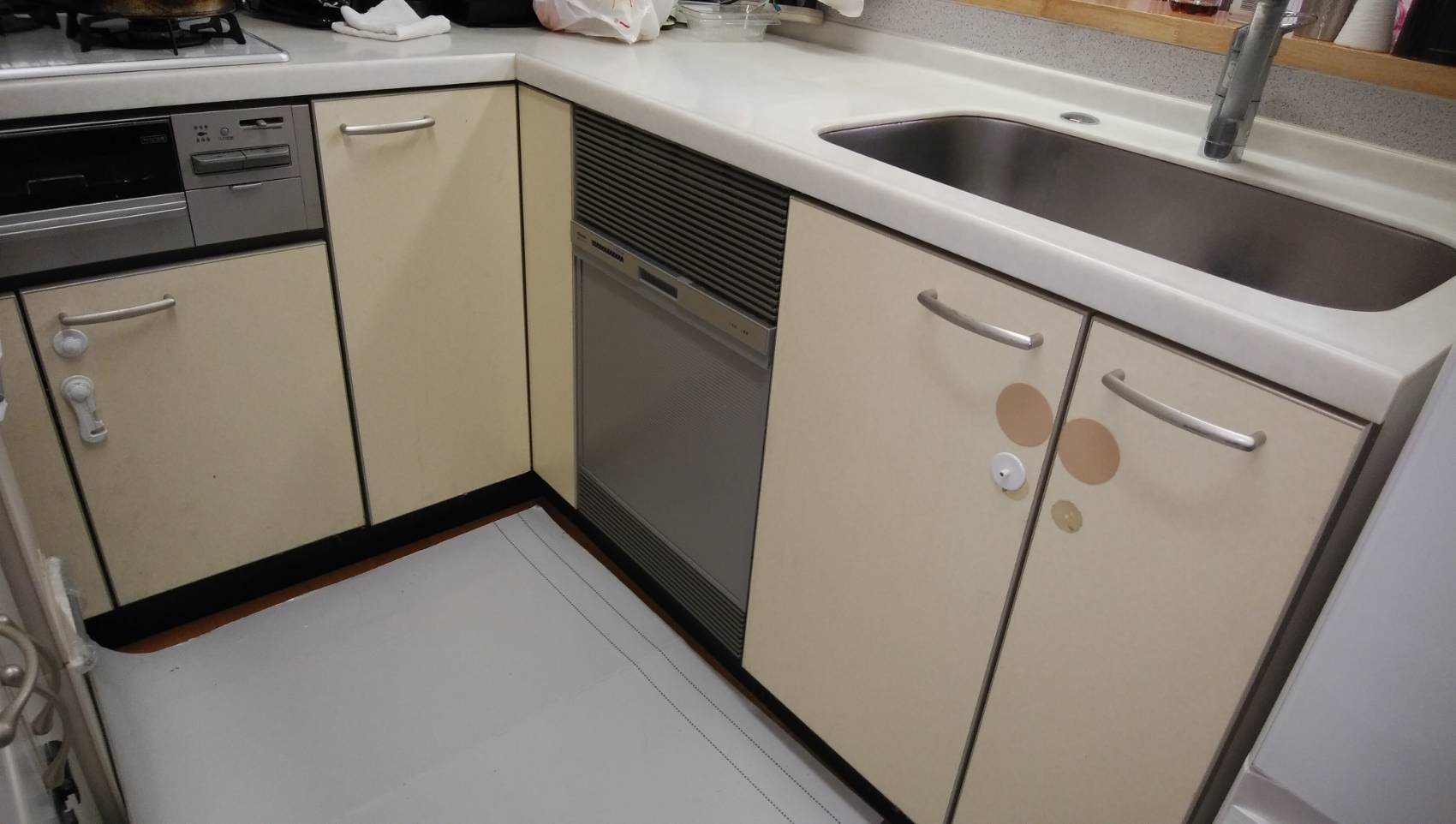 買い換え,交換,取り替え,リフォーム,ビルトイン,食洗機交換工事,取り付け,システムキッチン,リンナイ,スライドオープン,パネル面材