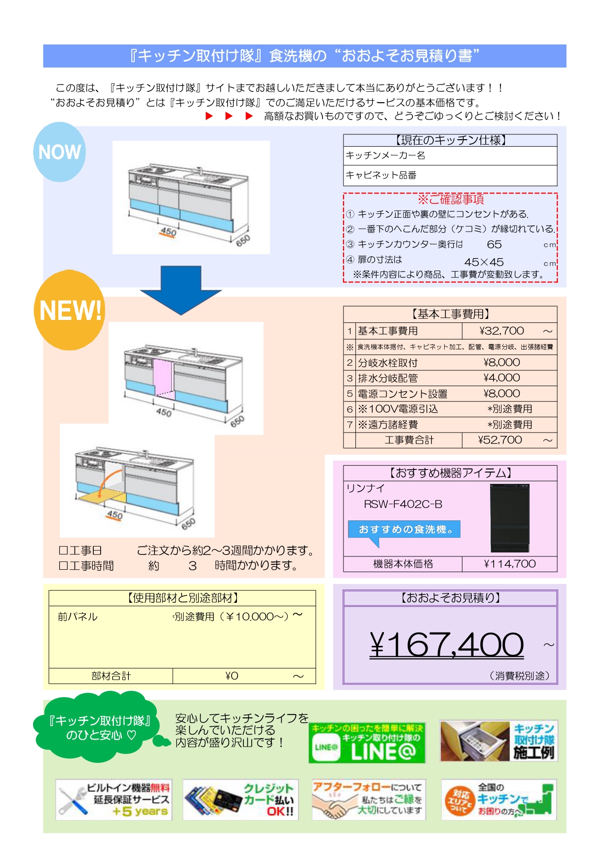 リンナイ,食洗機,あとつけ,交換,リフォーム,