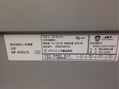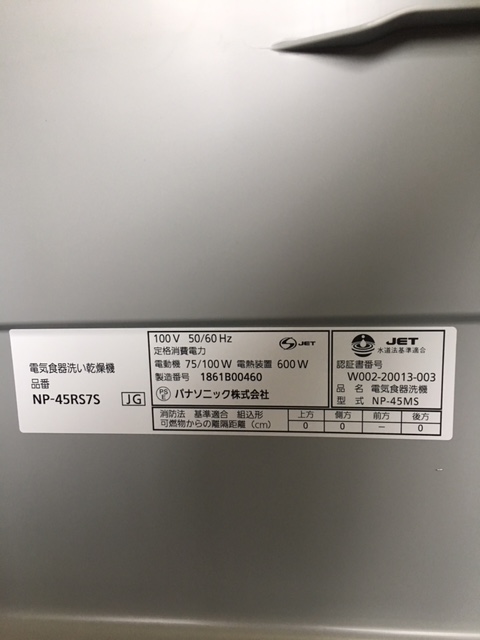 パナソニック食洗機 交換 NP-45VS7S①