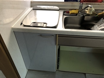 食洗機撤去,浄水器撤去,キッチン水栓取替,カラン取替,ZZKM5031TCL-E,カクダイ化粧フタ,扉取付,撤去工事,クリナップ