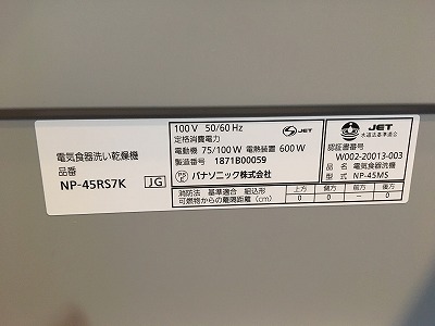 パナソニック食洗機 交換 NP-45MS7S①
