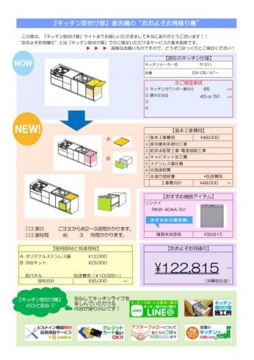 ヤマハキッチントップオープン食洗機取替え費用 限定