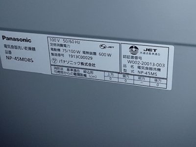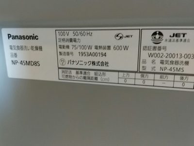 スライド食洗機,Panasonic,NP-60MS8S,nationai,S63EW1