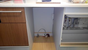 食洗機撤去,浄水器撤去,キッチン水栓取替,カラン取替,ZZKM5031TCL-E,カクダイ化粧フタ,扉取付,撤去工事,クリナップ