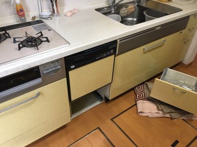 スライドオープン食洗機,撤去,RKW-456A,取り外し,リンナイ,日立ハウステック