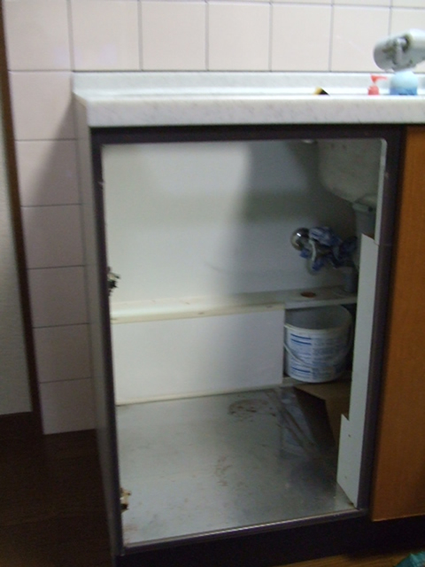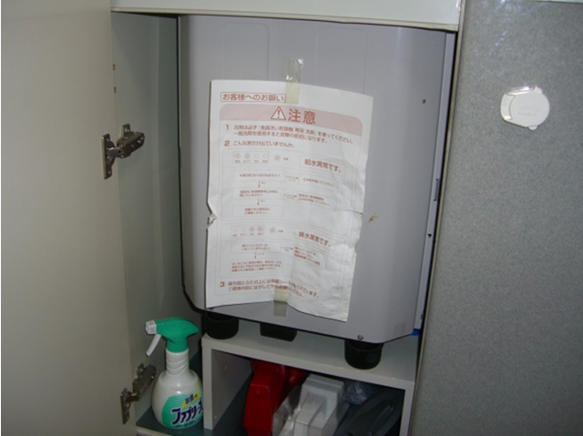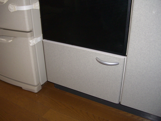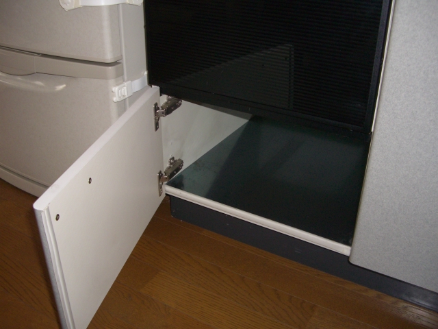 取り替え作業開始。扉を開けると本体とその下に少しのスペースがありました。