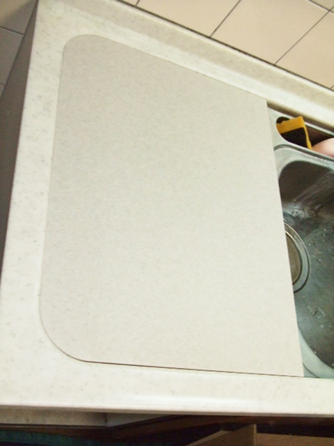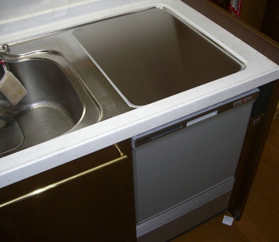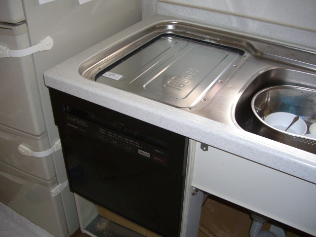 コンパクトタイプの新しい食洗機に取り替え、ステンレスのフタを貼り付けました。